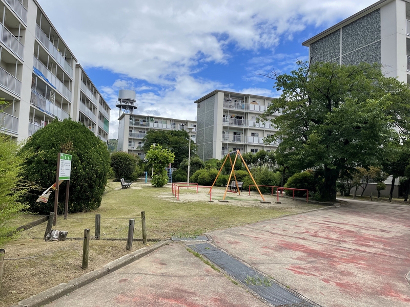 横には遊具付きの公園があり、車の通り抜けがないためお子さまも安心。団地に囲まれているので自然と住民同士の見守りが生まれる、やさしい環境です。
