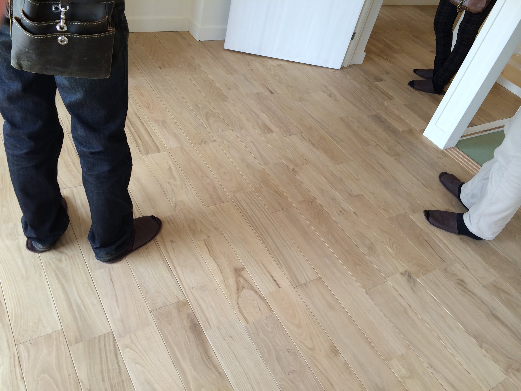 しんかな団地リペアではクリとサクラの無垢フローリングを使いました。コストはかかりますがシステムフローリングに比べて仕上がった時の温かみのある空気感、歩き心地、リッチさは比べようもありません。また、システムフローリングは表面が大きく痛むと張り替えるしかありませんが、無垢フローリングは表面をサンドペーパーや薄く鉋をかけると元通りに戻ります。10年20年30年と長い目で見るとランニングコストは無垢の方がお得なのです。何より使い込んでいくうちに何とも言えない味が出るのは魅力です。