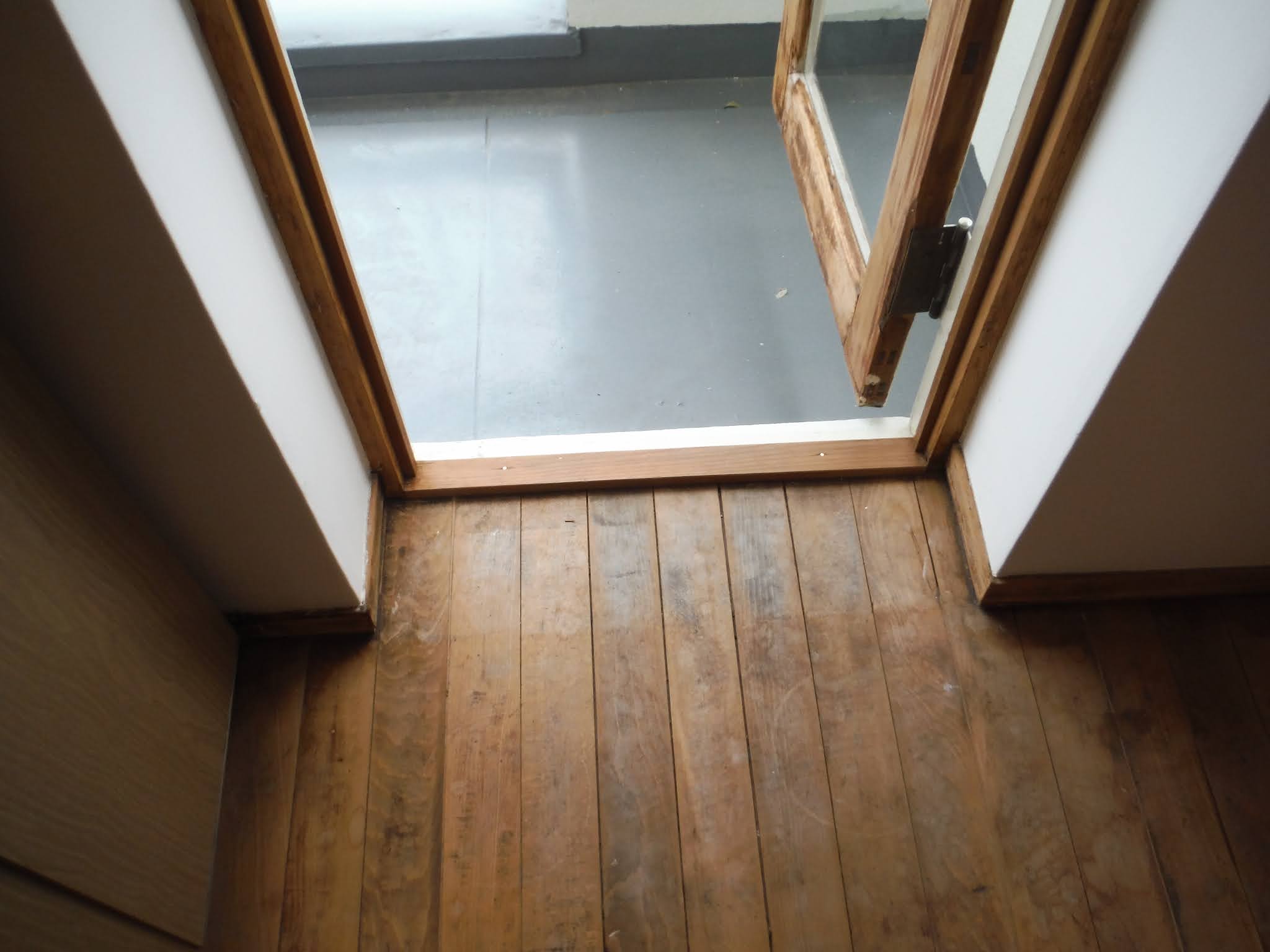 今では合板の表面に木の模様をあしらったシステムフローリングが安価で取り扱いが楽なので一般的ですが、当時はまだ販売されていなかったため無垢フローリングの方が一般的でした。古い団地の床の塩ビシートをはがすと下から無垢のフローリングが顔を出すこともしばしば。キッチンでは汚れが取りにくい無垢フローリングは敬遠されたのでしょう。後に高級な仕上げになることを知らず…。