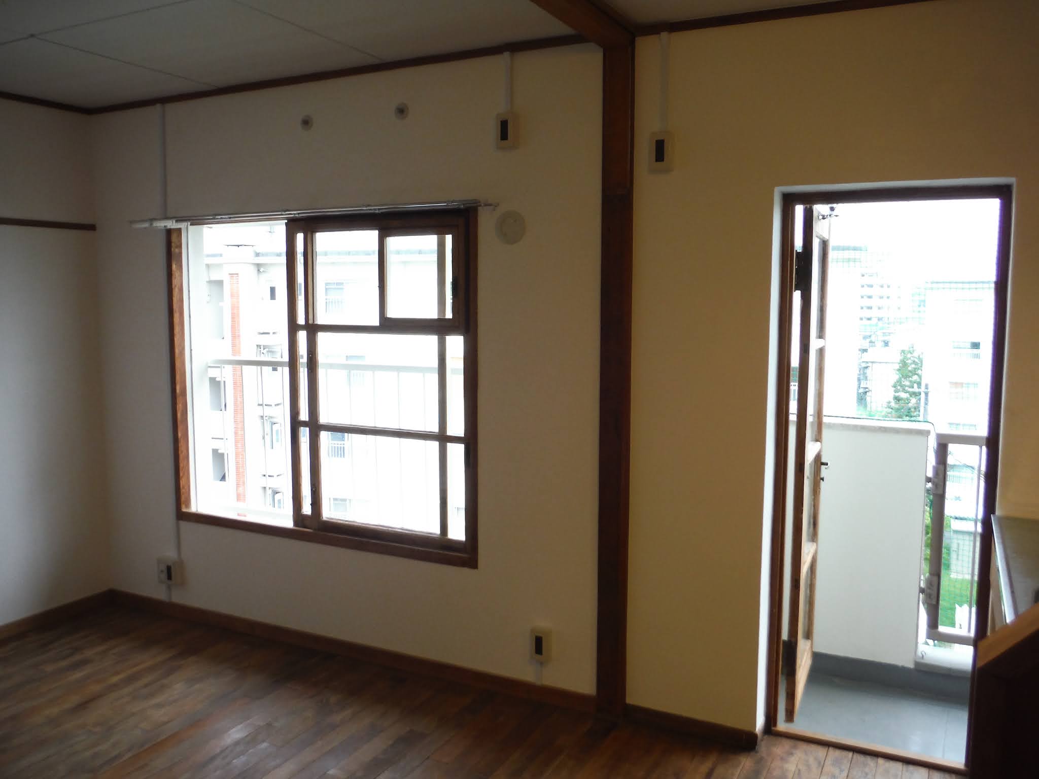 団地の床材というと塩ビシートなど人工的なものを想像しがちですが、団地が生まれた昭和30年代はまだ工業製品がないもしくは高価であったため、むしろ手作りの材料が多く使われました。窓は木製サッシ、壁は左官塗そして床は無垢のフローリングです。